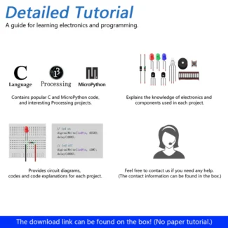 This kit helps you learn how to use it with its tutorial and project examples.